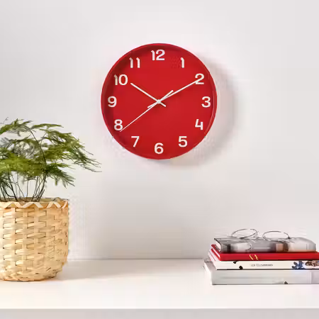 Красные настенные часы ПЛУТТИС будут сразу же привлекать к себе внимание в интерьере.