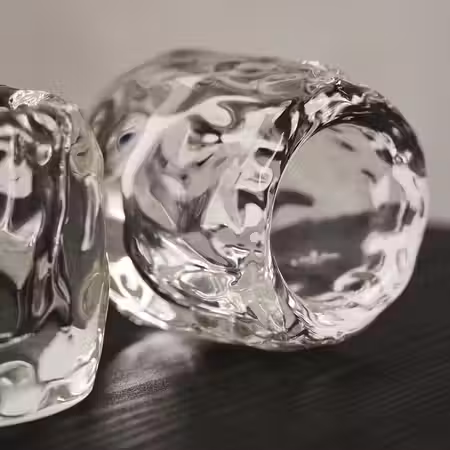 Каждый подсвечник из выдувного стекла обладает особой выразительностью, так как краска добавляется в процессе придания формы, создавая необычные декоративный узор.