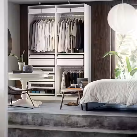 Гардероб ГУРСКЕН лаконичного дизайн идеально подходит для обустройства съемной квартиры или гостевой комнаты.