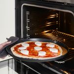 Сталь равномерно распределяет тепло, чтобы пицца получилась с золотистой поверхностью.