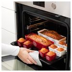 В набор входит: 2 формы для выпечки (длина 23 см, высота 5,5 см, ширина 6,5 см, объем 0,8 л) и 8 формочек для выпечки (длина 4,5 см, высота 4,5 см, ширина 4,5 см, объем 80 мл).