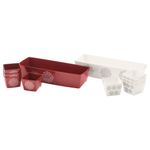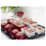 В набор входит: 2 формы для выпечки (длина 23 см, высота 5,5 см, ширина 6,5 см, объем 0,8 л) и 8 формочек для выпечки (длина 4,5 см, высота 4,5 см, ширина 4,5 см, объем 80 мл). Картон, ПЭТ (Полиэтилентерефталат). Возобновляемый материал (бумага).