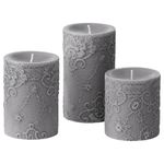 В набор входит: 1 ароматическая формовая свеча (высота 7,5 см, время горения 20 ч.), 1 ароматическая формовая свеча (высота 9,5 см, время горения 30 ч.) и 1 ароматическая формовая свеча (высота 11,5 см, время горения 40 ч.). Диаметр каждой свечи: 7 см.