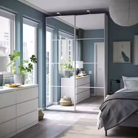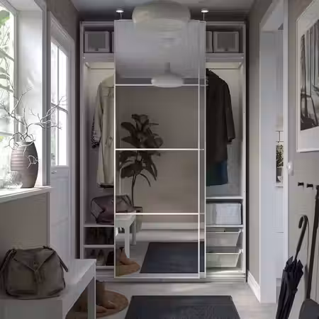 Отделка двери ФОРСАНД прекрасно сочетается с отделкой каркаса гардероба ПАКС.