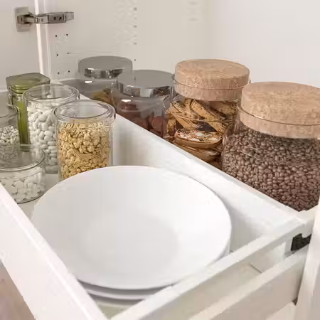 Удобный разделитель позволяет организовать пространство в ящиках, предотвращая столкновение и перемещение стаканов и столовых приборов.
