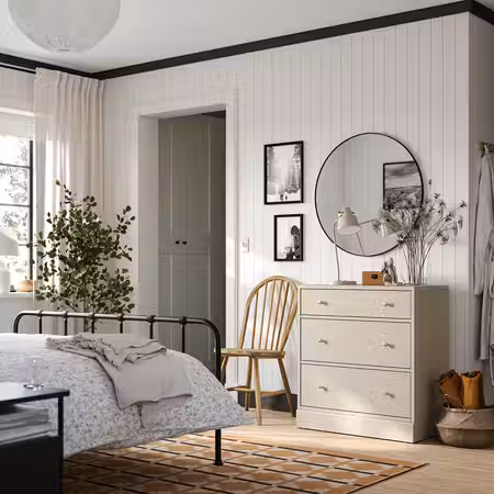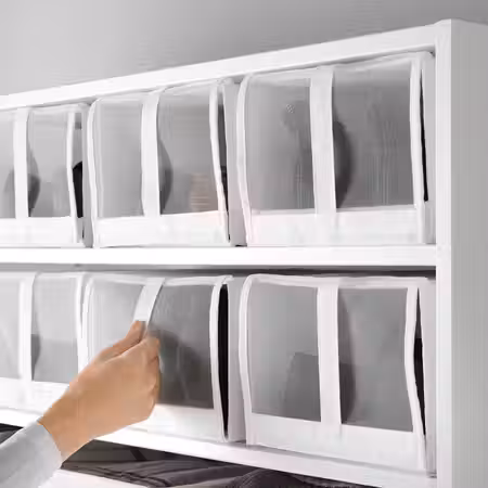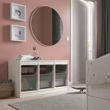 Этот ящик на колесиках с белой фронтальной панелью превращает скамью СМОСТАД в предмет мебели для хранения, который обеспечит место для самых разных вещей — от игрушек до спортивного инвентаря.
