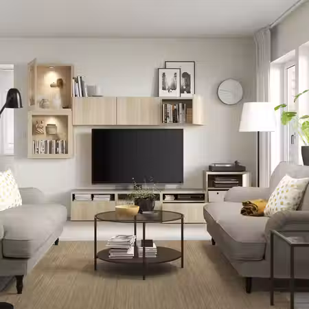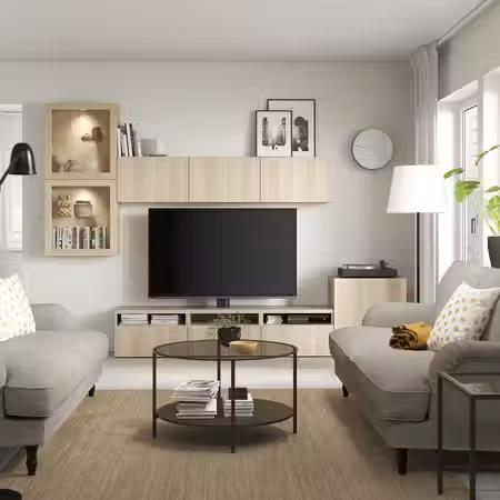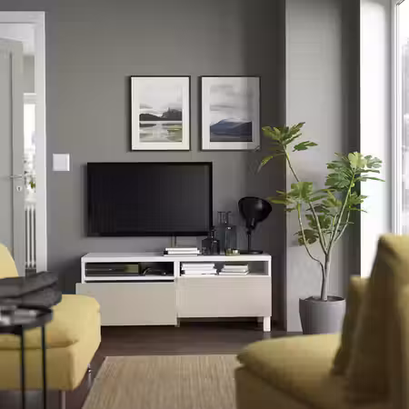 Тумба для телевизора БЕСТО может использоваться для телевизора и всех необходимых гаджетов.