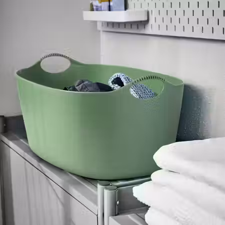Гибкую корзину ТОРКИС для белья можно использовать в помещении и на улице.