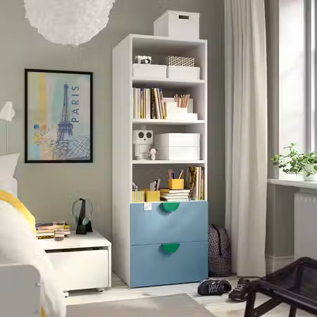 PLATSA 195.426.44 SMÅSTAD / Стеллаж - белый синий/с 2 ящиками 60x57x181 см