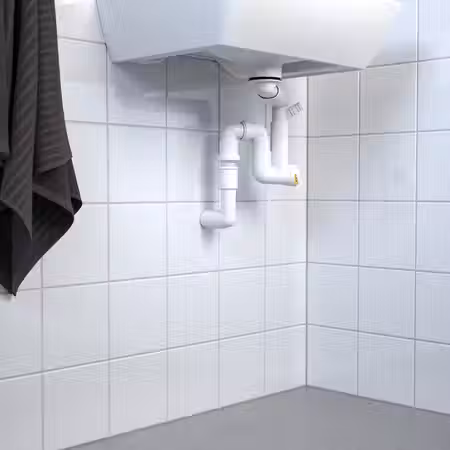 Сифон RÄNNILEN с гибкой трубой можно регулировать по длине, чтобы уместить его в шкафу с выдвижными ящиками или подключить к сливу, стиральной машине или сушильной машине.