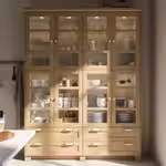За ними вы можете выставить красивую посуду, а также установить подсветку, чтобы создать в кухне приятную атмосферу.