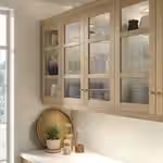 За ними вы можете выставить красивую посуду, а также установить подсветку, чтобы создать в кухне приятную атмосферу.