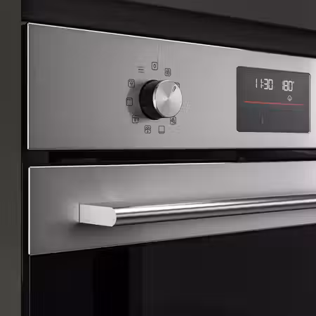Эта конвекционная духовка оснащена верхним и/или нижним нагревом, грилем и вентилятором с круговым нагревом сзади, который распределяет горячий воздух по всей духовке для быстрого и равномерного запекания.