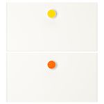 В набор входит: 2 фронтальные панели ящиков, 2 ручки и 1 лист с 10 круглыми наклейками (синего, оранжевого, зеленого, желтого и розового цветов – по 2 шт.).