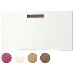 "Для дверцы МЭРСТА мы придумали интегрированную ручку, чтобы вам не приходилось заботиться о покупке ручек. Вы можете выбрать цвет ручки: белый, под дуб, коричневый или розовый; наклейки этих цветов прилагаются к каждой дверце. Вы можете сделать дверцу полностью белой, подобрать гармонирующий или контрастный цвет. Отличный способ придать интерьеру индивидуальный облик".