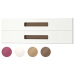 "Для дверцы МЭРСТА мы придумали интегрированную ручку, чтобы вам не приходилось заботиться о покупке ручек. Вы можете выбрать цвет ручки: белый, под дуб, коричневый или розовый; наклейки этих цветов прилагаются к каждой дверце. Вы можете сделать дверцу полностью белой, подобрать гармонирующий или контрастный цвет. Отличный способ придать интерьеру индивидуальный облик".