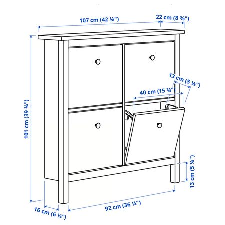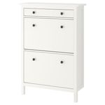 В каждом из двух глубоких отделений галошницы ХЕМНЭС можно разместить два ряда обуви. То есть как минимум двенадцать пар будут храниться в идеальном порядке, не загромождая прихожую. Отделения открываются таким образом, чтобы их содержимое было хорошо видно и вы без труда нашли нужную пару.