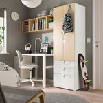 С этим гардеробом у вас будет достаточно места для хранения даже в очень маленьком помещении. Неглубокий каркас — идеальное решение для небольших помещений. Для безопасности как детей, так и взрослых все дверцы системы СМОСТАД имеют скругленные углы.