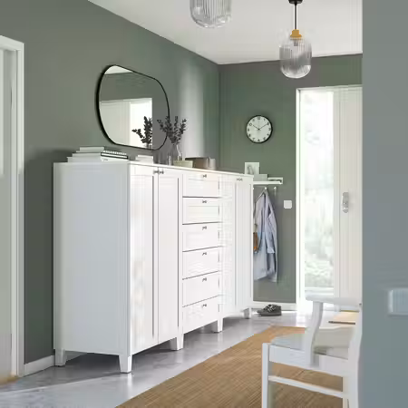 Обустроить внутреннее пространство шкафа помогут элементы серии ХЭЛПА, а организовать порядок за его пределами позволят аксессуары серии ЛЭТТХЕТ.