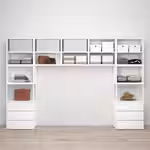 Комбинируя ящики, дверцы, фасады, наполнение, верхние и нижние планки легко составить систему хранения ПЛАТСА так, как хочется вам.
