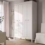 Складные дверцы гардероба ИДАНЭС помогают экономить место, а съемные полки позволяют регулировать внутреннее пространство в соответствии с потребностями.