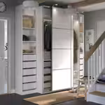 Каркас гардероба/рама для раздвижной дверец, с направляющими, 2 шт/4 панели для рамы раздвижной дверцы,штанга платяная/ящик/сетчатая корзина/направляющие для корзин/полка