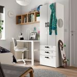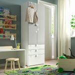 С этим гардеробом у вас будет достаточно места для хранения даже в очень маленьком помещении.Неглубокий каркас — идеальное решение для небольших помещений.Для безопасности как детей, так и взрослых все дверцы системы СМОСТАД имеют скругленные углы.
