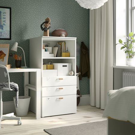 Можно дополнить одной из наших коробок из ассортимента ИКЕА для детей для организации хранения внутри мебели или на открытых полках. Продается отдельно.