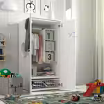 В гардеробе есть внутренние элементы, которые можно переставлять и адаптировать с учетом потребностей ребенка.