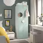 глубина шкафа позволяет развешивать в нем одежду на плечиках стандартного размера, а высоту его внутренних элементов можно менять по мере роста ребенка.