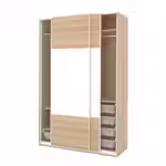 Двусторонний шкаф ТРОТТЕН с раздвижными дверцами обеспечивает доступ к вещам с обеих сторон, поэтому его особенно удобно использовать как разделитель помещения.