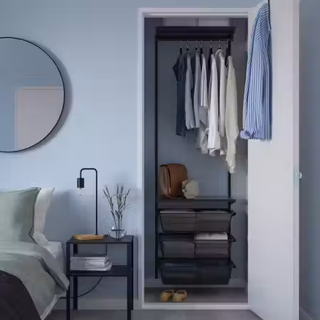 Эта система хранения проста в установке и обеспечит вам место для хранения одежды и обуви в спальне или в небольшой гардеробной.