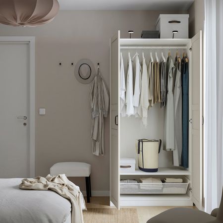 Съемные полки и платяная штанга позволяют регулировать пространство в соответствии с потребностями хранения.