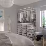 В этой комбинации гардероба достаточно места, чтобы повесить рубашки, аккуратно сложить свитера и убрать на хранение обувь и сумки.