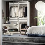 Если вы хотите дополнить каркас гардероба ПАКС раздвижными дверьми, высота потолка должна быть минимум 205 см.