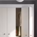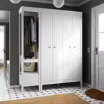 Складные дверцы гардероба ИДАНЭС помогают экономить место, открытую секцию можно установить с любой стороны, а благодаря съемным полкам внутреннее пространство легко регулировать в соответствии с потребностями.