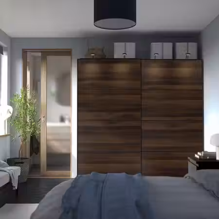 Если вы хотите дополнить каркас гардероба ПАКС раздвижными дверьми, высота потолка должна быть минимум 242 см.