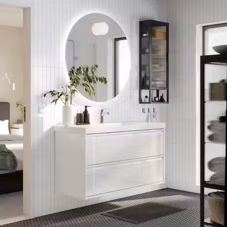 Мебель для ванной ЭНГШЁН выглядит современно и лаконично с минимумом деталей, чтобы каждый день начинался с чистоты.