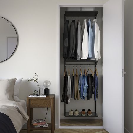 На платяную штангу БОАКСЕЛЬ 60 см можно повесить примерно 20 рубашек на плечиках.