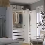 Использование этого модуля с каркасом гардероба ПАКС позволяет эффективно использовать угловое пространство.