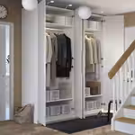 В гардеробе ПАКС вы сможете хранить много вещей на малой площади. Здесь есть платяные штанги для короткой и длинной одежды на плечиках, вентилируемые корзины, а также ящики и выдвижные полки, пространство которых можно оптимизировать с помощью