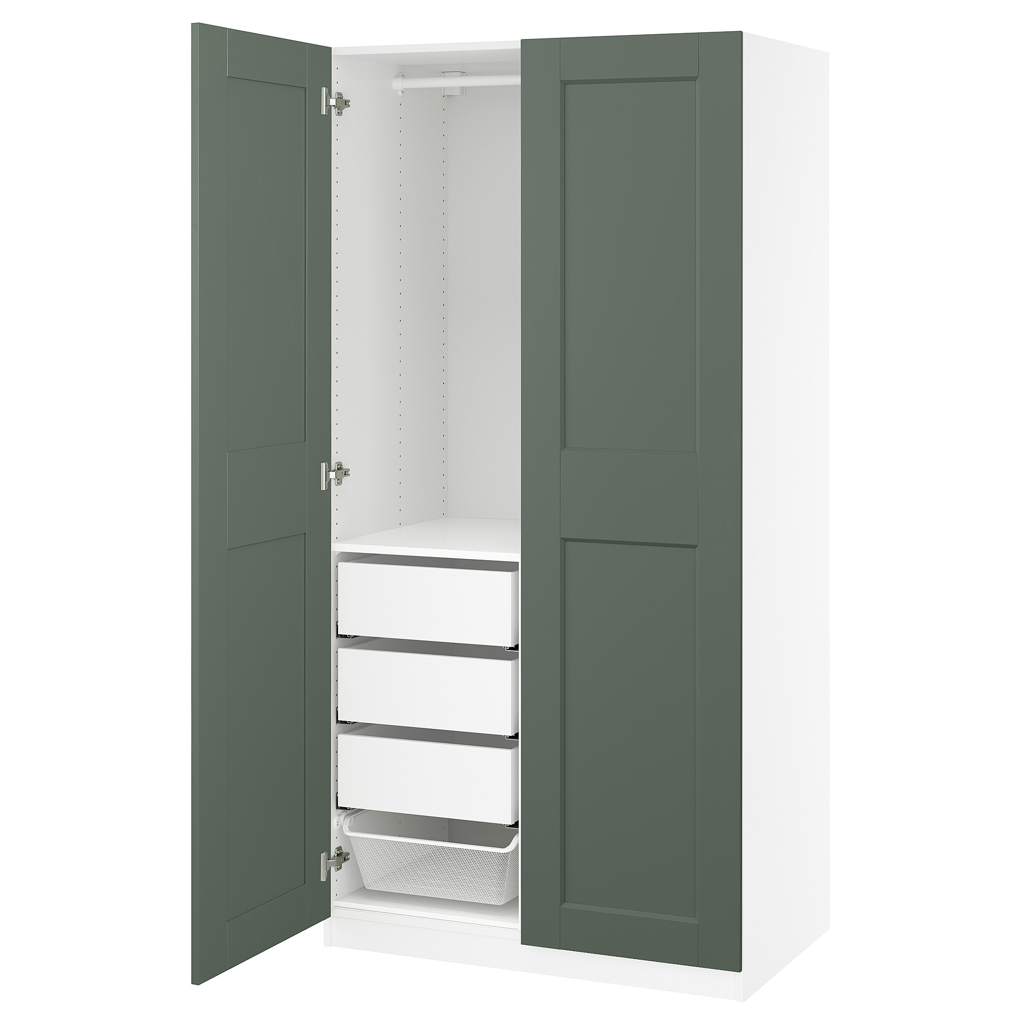 Гардероб, комбинация, белый, серо-зеленый, 100x60x201 см IKEA PAX ПАКС, GRIMO ГРИМО включает в себя следующие материалы:
