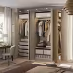 В этом гардеробе найдется отделение для всего на свете. Он подходит для тех, кто привык точно знать, где лежит каждая вещь независимо от ее размера, и при этом сохранять хороший обзор. Демонстрируйте свой идеальный порядок всем