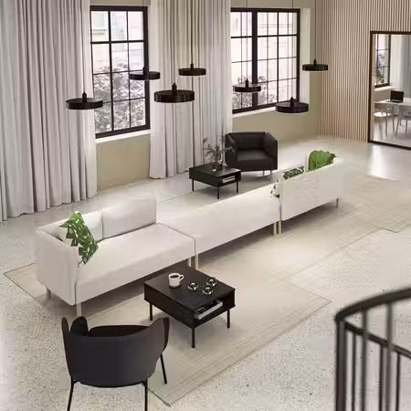 Модули одинаково хорошо смотрятся со всех сторон, поэтому диван можно придвинуть к стене или поставить по центру комнаты.