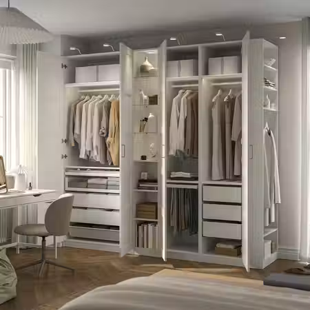 В этом гардеробе найдется отделение для всего на свете. Он подходит для тех, кто привык точно знать, где лежит каждая вещь независимо от ее размера, и при этом сохранять хороший обзор. Демонстрируйте свой идеальный порядок всем