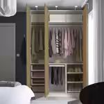 Если вы хотите дополнить каркас гардероба ПАКС раздвижными дверьми, высота потолка должна быть минимум 242 см.
