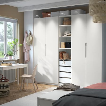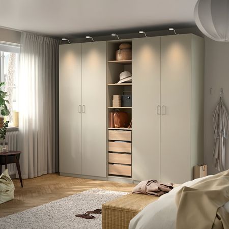 Если вы хотите дополнить каркас гардероба ПАКС раздвижными дверьми, высота потолка должна быть минимум 242 см.