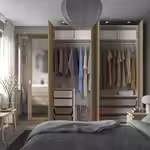 В гардеробе ПАКС вы сможете хранить много вещей на малой площади. Здесь есть платяные штанги для короткой и длинной одежды на плечиках, вентилируемые корзины, а также ящики и выдвижные полки, пространство которых можно оптимизировать с помощью