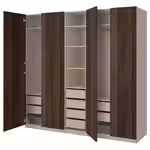 Если вы хотите дополнить каркас гардероба ПАКС раздвижными дверьми, высота потолка должна быть минимум 242 см.