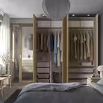Если вы хотите дополнить каркас гардероба ПАКС раздвижными дверьми, высота потолка должна быть минимум 242 см.